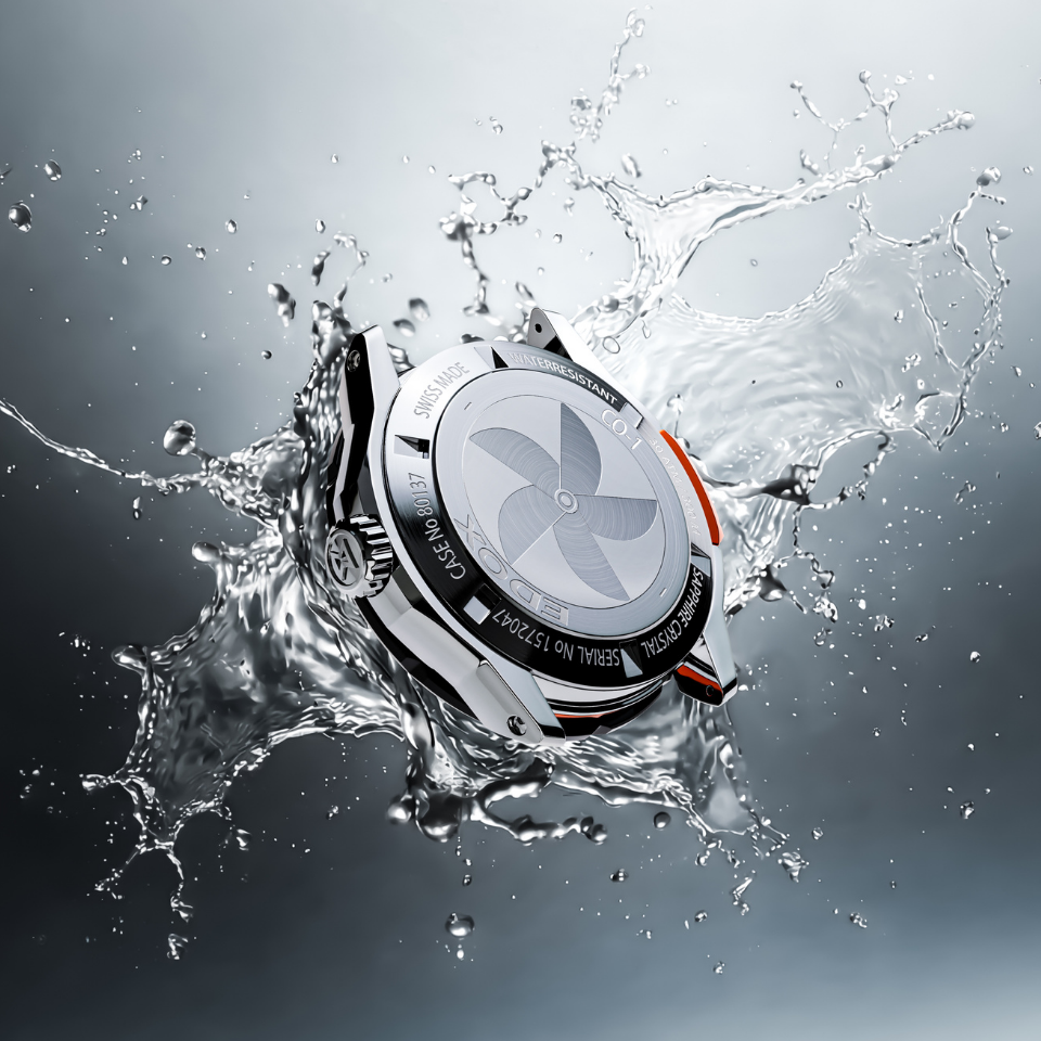 Функции : Rotating ceramic bezel , Гелиевый клапан , Завинчивающаяся заводная головка и кнопки , Заводная головка Edox и/или кнопка с двойным уплотнительным кольцом O'ring , Люминесцентные стрелки и/или индексы , Bezel lock